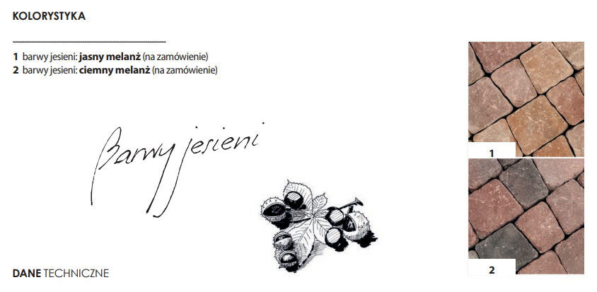 Kreta postarzana Barwy jesieni jest idealnym wyborem dla tych, którzy lubią jesienne pejzaże z ciepłym światłem na przebarwionych liściach. Taki klimat możesz przenieść do Twojego ogrodu dzięki specjalnie dobranej kolorystyce zestawionej w dwóch rodzajach kostki: melanż jasny i melanż ciemny.
