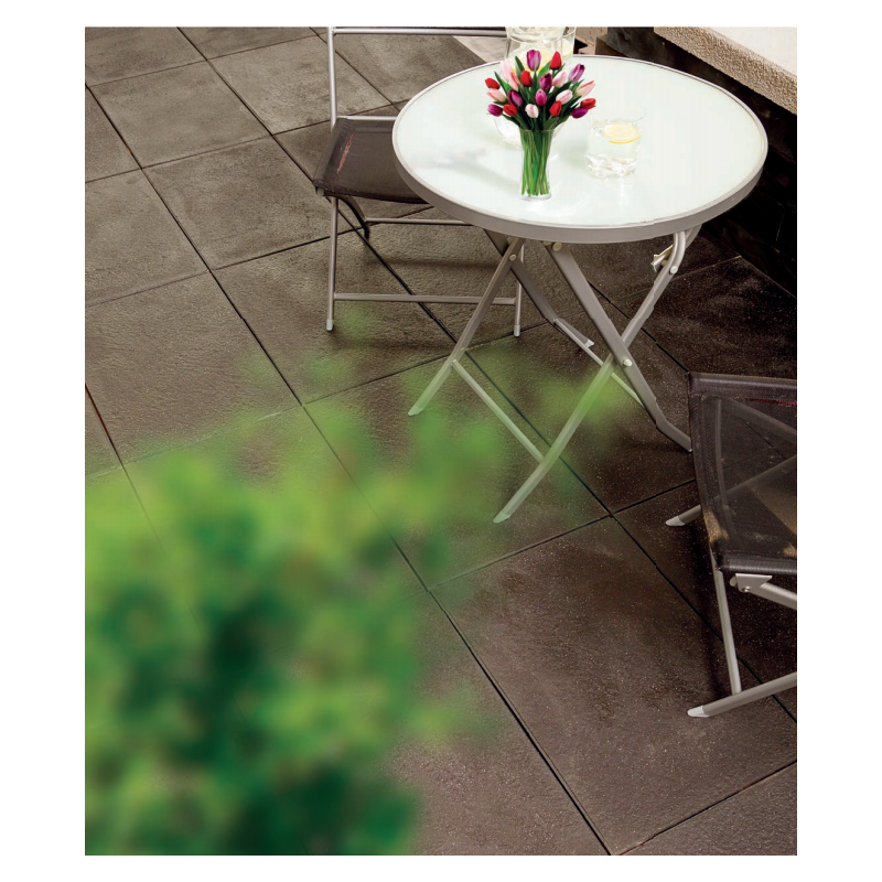 Nigdy jeszcze płyty tarasowe nie były tak przyjemne w dotyku. Górna warstwa płyt 4E05 o strukturze łupka to wyłącznie szlachetne włoskie kruszywo. Czarne 4E06 to bazaltowy, szlachetny produkt, który wspaniale harmonizuje zarówno z tradycyjną jak i nowoczesną architekturą .Odbiorca: :