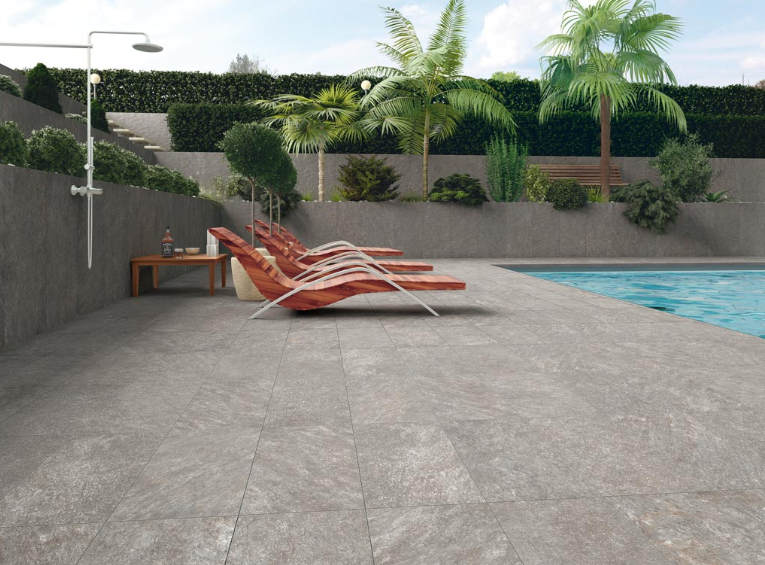 Płyty odzwierciedlające surowość kamienia z jego unikalną strukturą i przebarwieniami. W towarzystwie grysów i otoczaków tworzą niepowtarzalne i wygodne w użytkowaniu miejsce w ogrodzie. Doskonały kompromis estetyki i parametrów użytkowania.