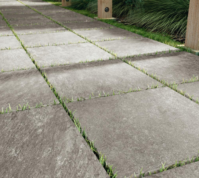 Przykładowe zastosowanie tego typu gresów 2cm na trawie